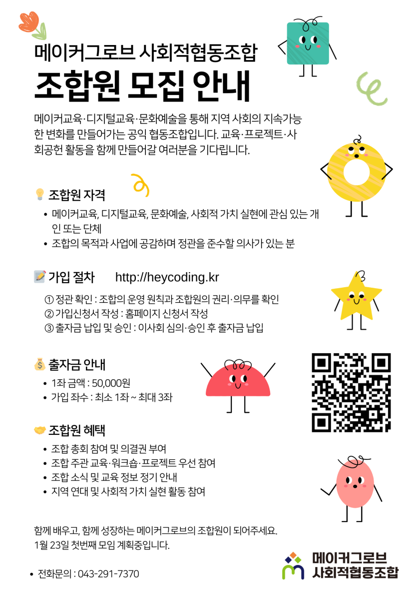 메이커그로브 사회적협동조합 조합원 모집 안내 페이지 정보 작성자 관리자 댓글 0건 조회 18회 작성일 25-12-19 18:14 본문 메이커그로브 사회적협동조합 조합원 모집 안내 목록 답변 글쓰기 다음글메이커그로브 사회적협동조합 사무실 이전 25.12.15 댓글목록 댓글목록 등록된 댓글이 없습니다.